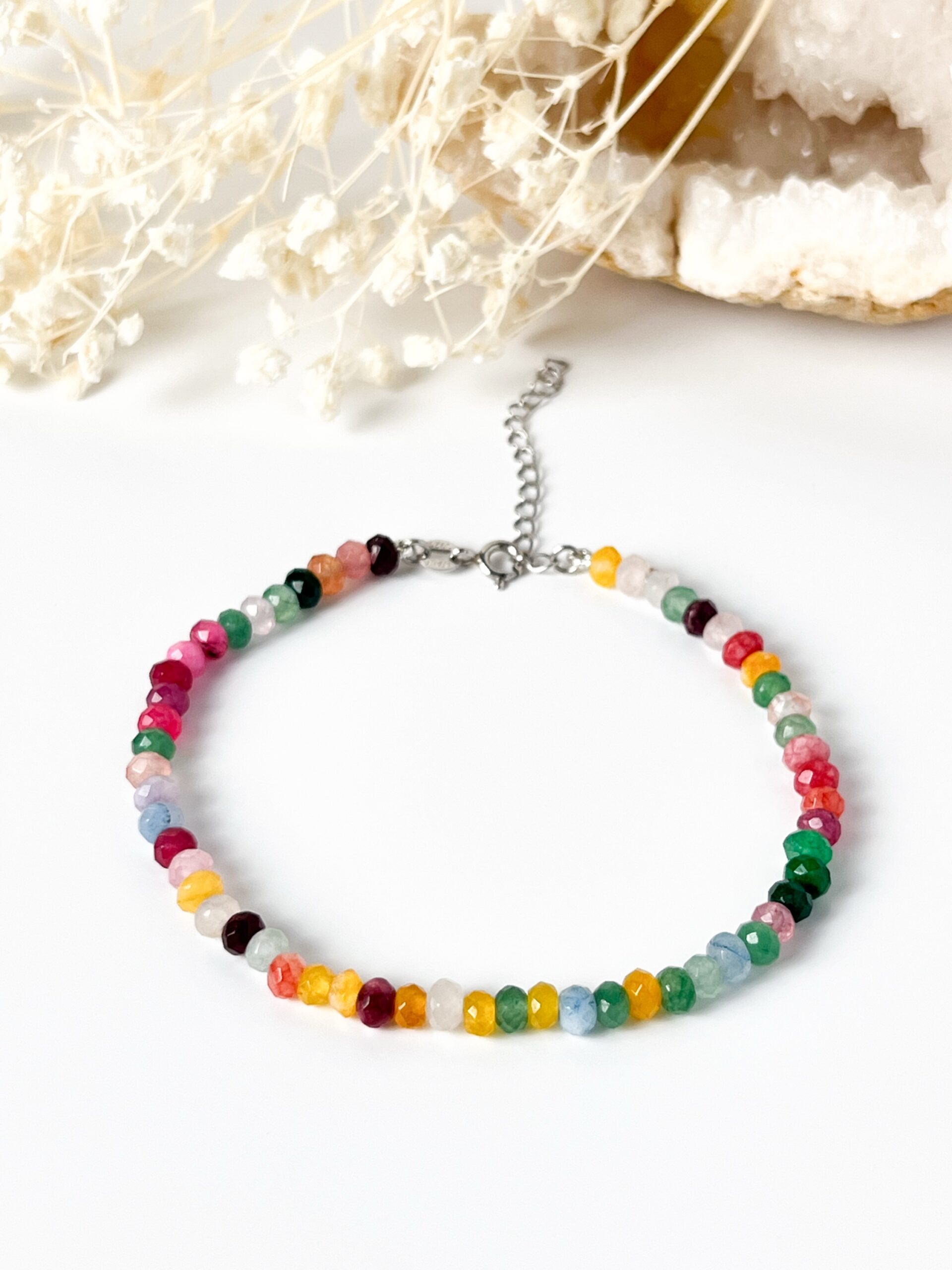 تجسّد إسوارة ”ألوان الجاسبر“ تنوّع الطبيعة وروعتها في تصميم متقن، حيث تتناغم حبات جاسبر ياقوتي طبيعي متعددة الألوان، بين حبات ممدودة وحبات دائرية مسطحة 3 ملم، مع الفضة عيار 925 لتخلق قطعة فاخرة تعكس الأناقة الهادئة والحيوية المتألقة.
