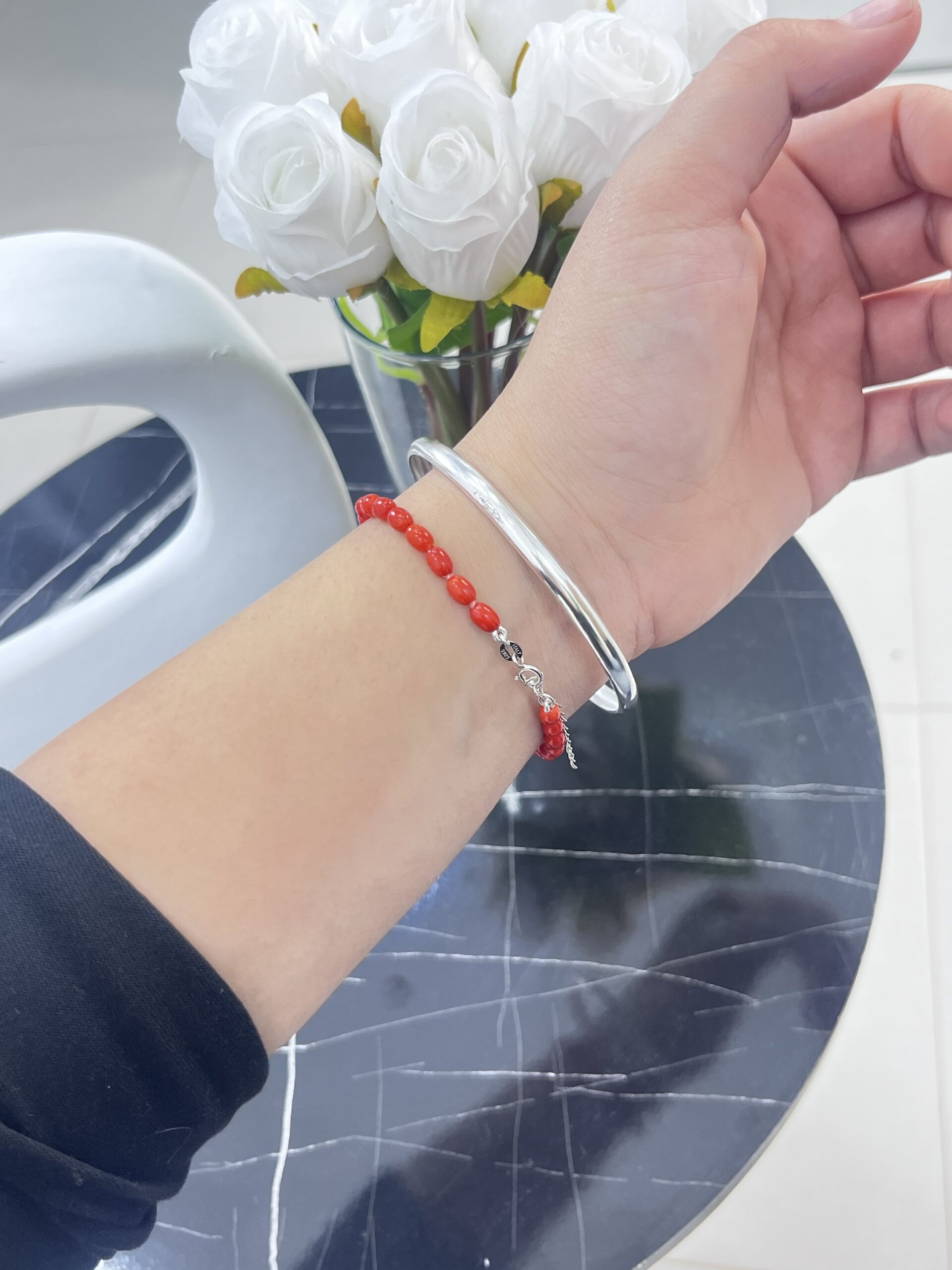 تتوزّع حبات المرجان حول المعصم كنغمات طبيعية تمنحك إحساسًا بالدفء والرقة، لتكون قطعة مثالية للإطلالات اليومية الراقية والمناسبات الخاصة.